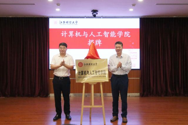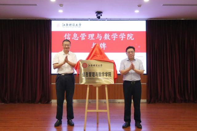 最后举行了信息管理与数学学院、计算机与人工智能学院揭牌仪式。党委书记刘耀彬教授和梅国平教授为信息管理与数学学院揭牌,校长邓辉教授和石光明教授为计算机与人工智能学院揭牌。