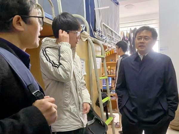 活动伊始,方玉明副校长走访NB515学生寝室,详细询问了同学们的日常生活、学习状态及未来规划,对同学们提出的疑惑和建议进行了耐心解答。寝室成员展示自己制作的图形动效小程序,并同方校长交流、讨论。同时,方校长还鼓励同学们要保持良好的生活习惯,为学习提供坚实的身体保障。