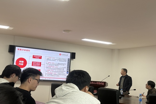 3月14日上午,为提升学生创新创业能力,助力学生在“挑战杯”和中国国际大学生创新大赛(原“互联网+”大赛)等高水平赛事中取得佳绩,江西财经大学计算机与人工智能学院党委书记张志军在大学生活动中心为参赛学生进行赛前指导,并分享了他作为指导老师和比赛评委所积累的宝贵经验。