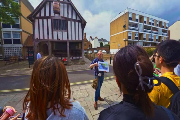 开课前夕,团队成员走进南安普顿校园与市中心历史街区。校园内设施先进齐备,古典建筑为学校增添一抹亮丽。漫步市中心,中世纪城墙遗址诉说着城市变迁,市政厅、古老教堂与沿街的小店交织成独特画卷。向导讲解着建筑背后的历史故事,团队成员在老城墙触摸着历史遗留下的痕迹,在社区广场观察当地人生活。这场探访让学生提前感受城市的历史起源与人文气息,为后续课程学习埋下生动伏笔。