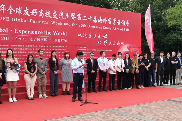 随后,校领导发表致辞。他对远道而来的海外高校代表表示诚挚欢迎,强调在教育国际化浪潮下,留学咨询展已成为学校落实教育对外开放战略的重要载体。发言中,领导既回顾了展会的发展历程,更传递出对江财学子海外求学、成长成才的殷切期许。