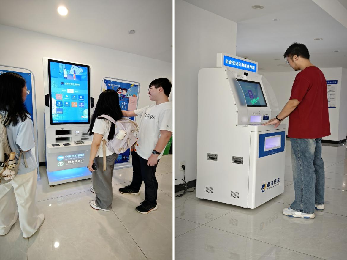 此外,课题组深入自助终端服务区域,亲身体验智能化自助终端服务流程。课题组成员通过自助终端模拟业务办理全流程操作,详细记录业务办理步骤与系统交互细节,以实操方式感受智能化服务的高效性与优化空间。过程中,课题组成员拍摄了大厅内展示的业务办理流程图。该流程图以可视化形式呈现了业务办理的各个环节与关键节点,为业务流程分析补充了直观的图文参照,助力后续流程改造工作。