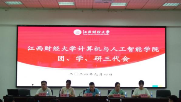 9月4日下午,计算机与人工智能学院召开第一次团、学、研代表大会,出席本次会议的领导、老师为原信息管理学院院党委书记张志军老师、院党委副书记杨婉琪老师、学工办主任邹俊老师、辅导员刘燕婷老师、辅导员唐盛老师、辅导员熊平安老师、辅导员李昱老师、辅导员许秋霞老师。