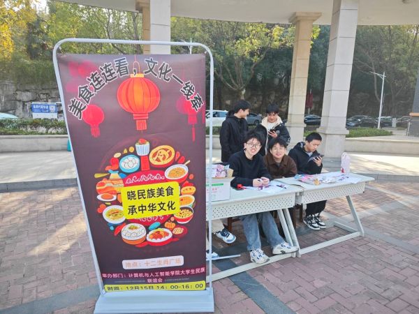 计算机与人工智能学院于2024年12月15日在麦庐园大学生十二生肖广场正式举办民族美食连连看活动。本次活动的主题是“晓民族美食,承中华文化”,旨在为各民族同学深入了解少数民族美食文化,帮助少数民族学生增强自豪感和认同感,实现个人成长和发展,使各民族文化在沟通与互动中和谐发展。