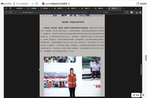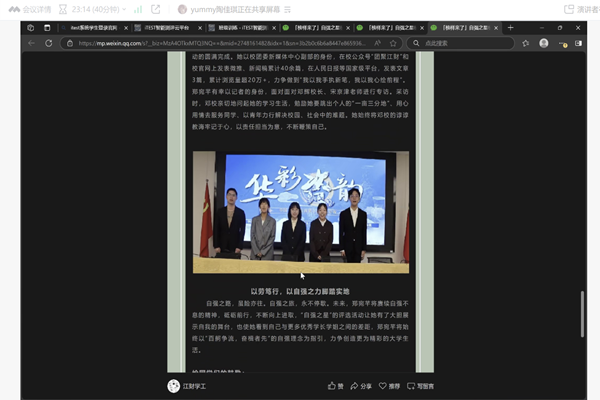 本次 “自强之星故事汇” 活动的成功举办,为同学们树立了榜样力量,搭建了交流成长的平台。通过分享自强之星的事例,传递了正能量,让同学们更加深刻地理解了自强精神的内涵,有助于激励大家以更加积极的态度面对学习与生活中的困难。线上直播的形式也让活动覆盖面更广,营造了积极向上的校园文化氛围。(图文/计算机与人工智能学院 审核/李昱 廖波 张志军)