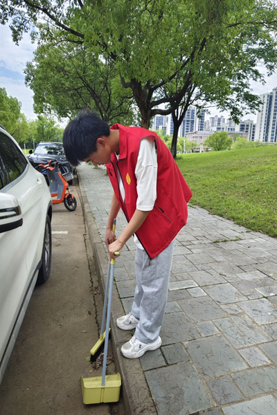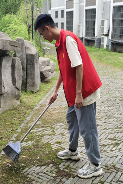 在清扫过程中,志愿者们展现了高度的责任感和团队精神。各小组重点清理了教学楼周边的道路和绿化带,仔细捡拾散落的纸屑和烟头;认真清扫宿舍区道路,擦拭公共设施;深入灌木丛,清理积存已久的塑料瓶等垃圾。虽然午后气温较高,但大家的劳动热情丝毫不减。