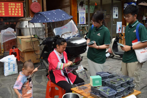 破除产业发展瓶颈(对焦中年经营者):针对侗寨、苗寨中从事旅游服务、特色产品(侗布、香禾糯、民宿)经营的村民普遍存在的“怕说不好”心理,实践队在风雨桥畔、鼓楼下、店铺前、古井边等经营核心区,灵活开设“移动小班”和“一对一辅导”。