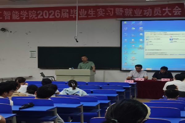 为精准部署2026届毕业生毕业与就业工作,引导学生明晰未来规划,提升就业竞争力,计算机与人工智能学院于2025年9月24日下午在麦庐校区大学生活动中心D101隆重举行2026届毕业生实习暨就业动员大会。校人民武装部副主任陈世军、学院党委书记张志军、副院长张勇、蒋剑老师、全体毕业班辅导员及班主任出席会议,2026届全体毕业生参加大会。大会由学院党委副书记廖波主持。