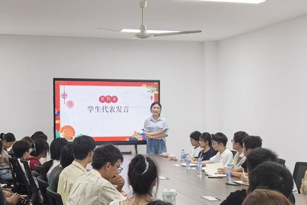 然后,座谈会迎来了一抹亮丽的色彩——学生代表发言。来自高年级、荣获国家励志奖学金的王雅雯同学,以其真挚的情感和生动的经历,向在场师生分享了她的成长故事与励志心路。王学姐用自己的行动诠释了“自强不息、厚德载物”的精神。她的讲述既有青春奋斗的力量,又有直面困境的韧性,不仅激励了同学们奋发向上,也加深了大家对学院教育理念的认同与共鸣。随后的猜灯谜等小游戏环节气氛更是热烈而融洽,大家踊跃抢答,欢声笑语不断,现场气氛持续升温。