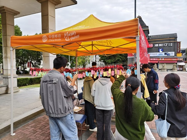 字谜区则是另一番热闹景象,灯笼上的字谜涵盖诗词、典故、传统文化常识等内容,如“九月初九(打一节日)”“遍插茱萸少一人(打一字)”,同学们或独自思索,或三五成群讨论,解开谜题后可到志愿者处兑换中国结,桂花饰品等礼品,并且获取大量思想领域pu绩点,现场氛围轻松愉悦。