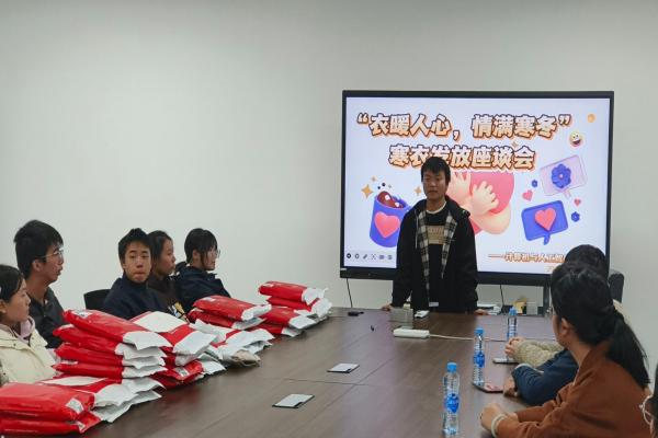 时序更迭,秋尽冬来。为了贯彻落实党和国家资助政策,传递党和国家的民生温度,让爱心传递,让温暖蔓延,并对学生资助工作的关怀落到实处,江西财经大学计算机与人工智能学院资助服务部积极响应号召,在11月21日举办寒衣发放座谈会,为2025级贫困学子送去寒衣,确保每一位贫困学子都能心无旁骛,在求学路上砥砺前行。