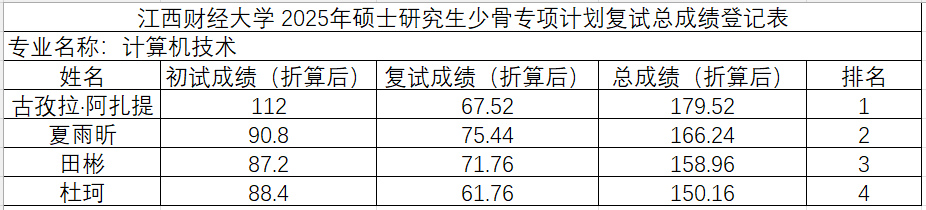 江西财经大学计算机与人工智能学院少骨专项计划2025年硕士研究生复试结果公示