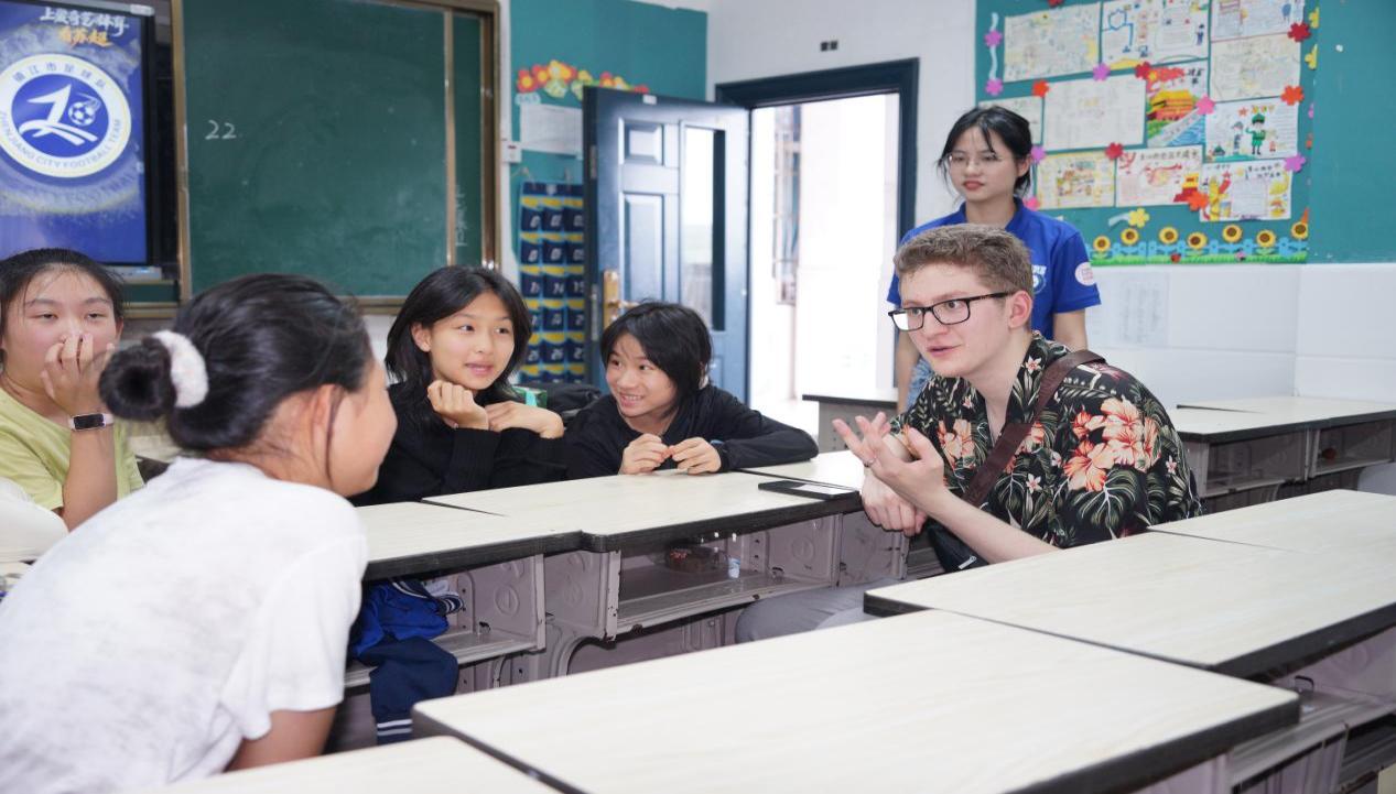 在江西财经大学校园内,一系列中国传统文化课程如书法、太极扇、中国功夫等,让营员们沉浸式感受到中华文明的深厚底蕴,也领略到东方哲学“阴阳和合”的独特智慧。而前沿科技领域的深度探讨,如“全球视角下的AI与劳动力市场‘思想交流会’”“高等教育发展的国际比较”论坛等,则让各国青年学子直观感受到中国在人工智能、教育创新等领域的蓬勃发展与学术活力,见证了一个传统与现代交相辉映的学术中国。中外青年志愿者们更在江财附中、附小的英语课堂上,通过融合多元文化的创新教学,搭建起跨文化交流的温暖桥梁。附中英语教研组组长反馈:“这种真实的跨文化交流,比任何多媒体教学都更能点燃孩子们的语言学习激情。”课堂上,学生们从最初的羞涩观望到主动参与,展现出显著的语言能力提升和跨文化沟通意识。多位教师反馈,此类活动不仅拓宽了学生的国际视野,更让英语作为国际通用语言的价值得到生动体现。
