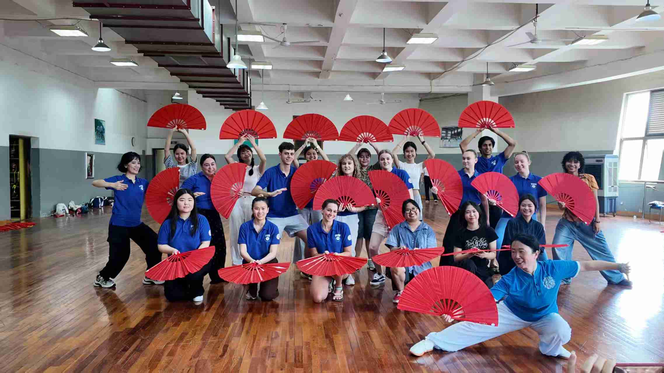 传统文化体验课程则让国际学生沉浸式感受中华文明的魅力。王妤彬、叶慧老师领衔的中国书法课上,墨香氤氲中,学员们手执毛笔临摹“和”“福” 等字样,在一笔一画间体会汉字的美学意境;钟冬根、王芙蓉老师指导的太极扇与中国功夫课程中,海外青年身着练功服,在刚柔并济的招式中领悟“阴阳和合”的东方哲学。“太极不仅是身体的运动,更是心灵的修炼,这让我对中国文化的‘内修’理念有了直观理解。” 印尼大学学生Bayu在课后分享道。
