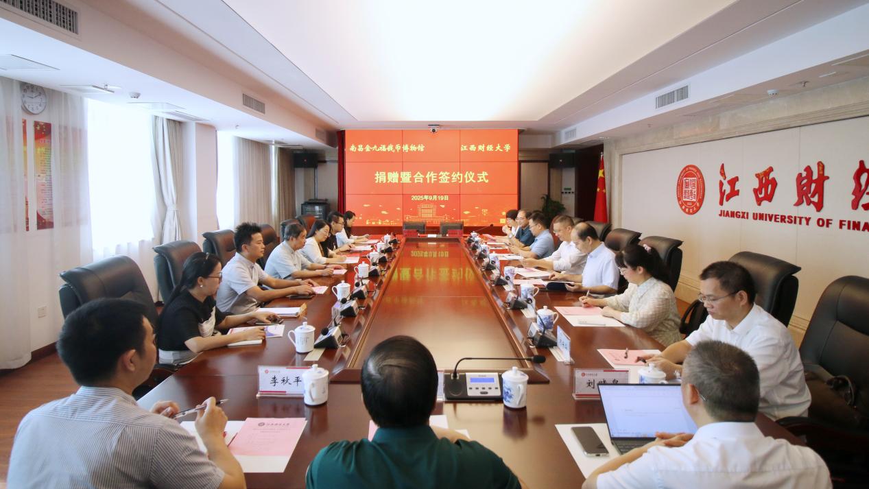 南昌金九福钱币博物馆创始人金家栋先生将其精心收藏的红色货币、革命文献和史料等共计237件正式捐赠给学校。刘耀彬为其颁发了捐赠证书。