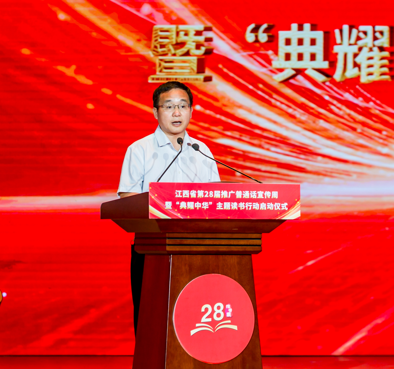 活动现场举行了推广普通话宣传周暨“典耀中华”读书行动启动仪式,并向中小学校捐赠“典耀中华”读书行动书籍,播放了第28届全国推广普通话宣传周公益宣传片和“十四五”规划江西语言文字事业成果专题片。